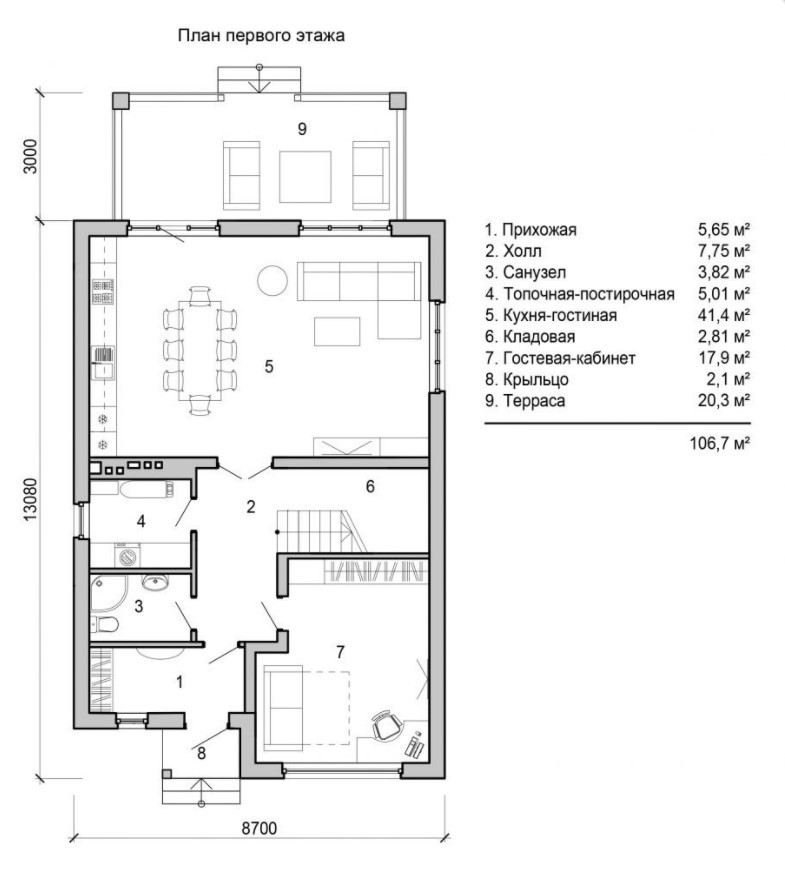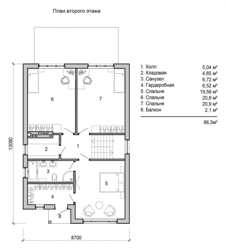 8,70 х 13,08 м²