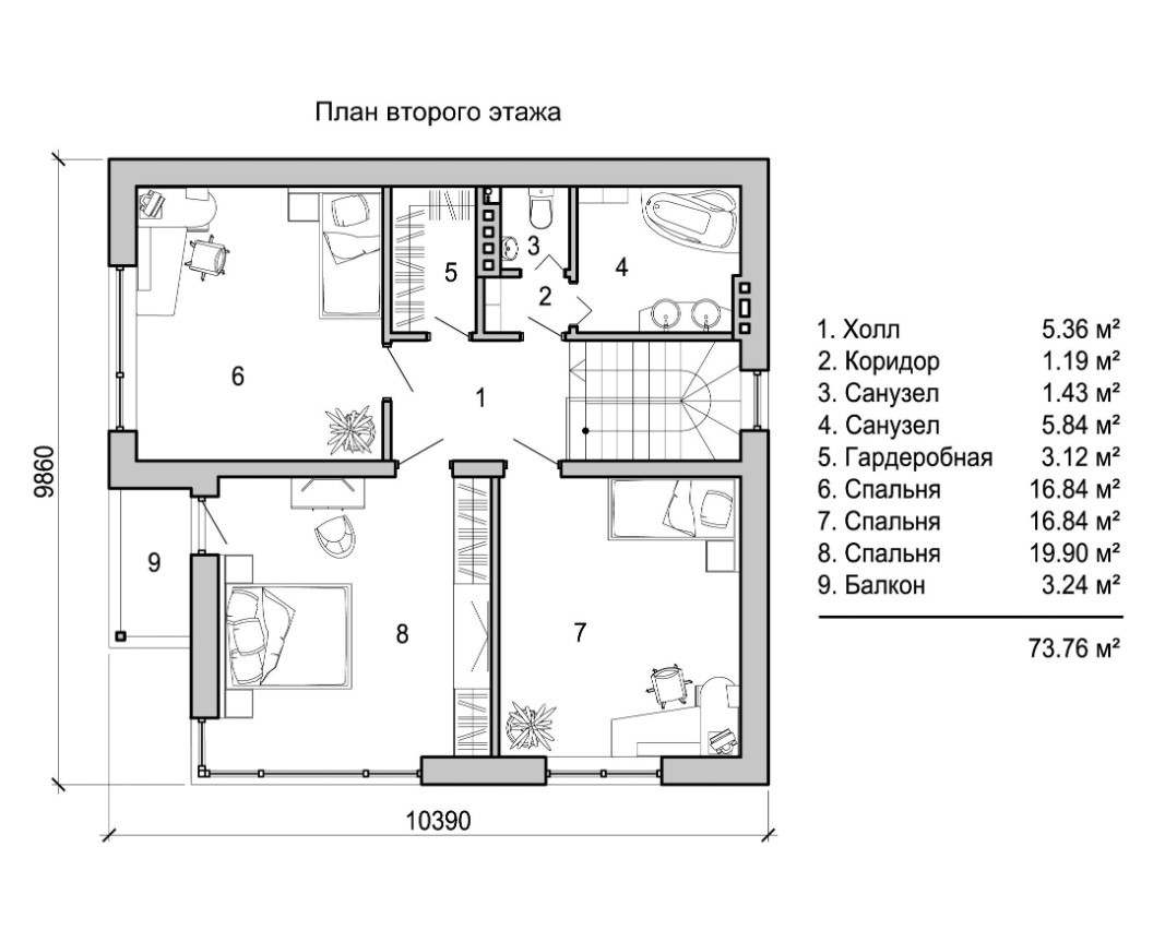 Проект двухэтажного коттеджа с верандой